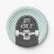 Skateboard Let's Kick It, Birthday party plates with blue check and skateboard.