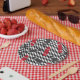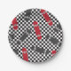Skateboard Let's Kick It, Birthday party plates with red check.