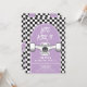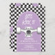 Skateboard Let's Kick It, Birthday invite with black check and purple skateboards.