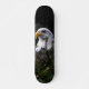 The skateboard has a specific design representing a powerful bald eagle. The skateboard incorporates an illustration or engravment of a bald eagle, an emblematic symbol commonly associated with force, freedom and power. The bald eagle is known as the national bird of the United States and is often associated with majesty and greatness. Therefore, the skateboard with this design looks impressive and symbolic, highlighting strength and elegance through the image of this iconic symbol.
