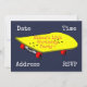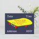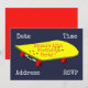 A funky, cool and hip skateboard themed birthday party invitation suitable for a teenage or tween boy with a graphic of a yellow skateboard against a funky navy blue background. The text and background colour is fully able to be customised to include your own personal details.