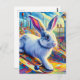 Skateboarding Bunny Surreal Colourful and Fun Postcard
