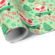Creative skateboarding holiday gift wrap featuring funny Santa skateboarder surrounded by Christmas candy and cookies.