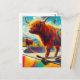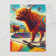 Skateboarding Highland Cow Colourful and Fun Postcard
