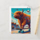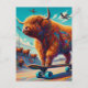 Skateboarding Surreal Highland Cow Postcard