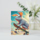 Skateboarding White Bunny Surreal Colourful and Fu Postcard