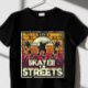Here’s another trending vintage-style t-shirt design featuring a retro sunburst, palm trees, a skateboarder mid-trick, and the phrase "Skate the Streets." 🛹🌴