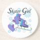 Our Skater Girl design T-shirts, mugs, bags, cards, pillows, wall clocks, keepsakes, hoodies, and other skating theme items features a pair of blue and lavender skates and mittens on a string surrounded by lots of wintry snowflakes and text that reads Skater Girl!