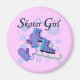 Our Skater Girl design T-shirts, mugs, bags, cards, pillows, wall clocks, keepsakes, hoodies, and other skating theme items features a pair of blue and lavender skates and mittens on a string surrounded by lots of wintry snowflakes and text that reads Skater Girl!