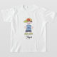 Personalised t-shirt featuring a boy wearing colourful cap, a blue t-shirt with the word "skate", dark blue shorts and green sneakers. You can add your name and change font style,font size and font colour by clicking on "Personalise".