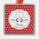 Dated & personalised cute pair of ice skates Christmas Ornament set on a Red & White snowflake pattern background. A Wonder Christmas gift sure to be treasured for many years to come.
