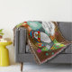 A quality printed throw has its advantages. This is a much finer weave throw than its loopier cousins, and though lighter, it is worth the investment for custom room accessorizing. The back is much prettier than the typical brown, and the fringe on the long sides very vivid, the selvage nicely done. Before photographing, I washed the throw in cold water, delicate, with a thicker woven throw the same size. On tumble dry low, this throw was dry in half the time as the other. This is a very practical quality if you use throws for furniture covers or to wrap up in frequently. The sleekness of the fabric makes it a great layer for accenting or protecting without the feeling of sitting on too much stuff. Perfect for napping or when you feel a light chill coming on. The color printing is beautiful and on this fabric, matched the design and color of my Photoshop image. This is an advantage for blending room fabrics and colors. The fringe on the short sides prints the colors from the design image and therefore varies from the side fringe. I streaked a white fractal line through the plaid pattern to give the illusion of weaving. This printed as crisp as an illusory thread, and put some white in the short side fringe, showing another advantage of print vs loomed- for artistic purposes, line lines, detail, and color integrity can be planned and preserved. My loomed throws have color limitations and more of a needlepoint texture. Print throws reproduce an exact image. The throw felt a little stiff straight out of the package, but this went away in the first delicate wash. Of course I searched the wash water for ink or bleeding and there was none.