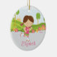 Dated & personalised cute brunette roller skater skating Christmas Ornament set on a background with trees & flowers. A Wonder Christmas gift sure to be treasured for many years to come.