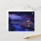 Perfect postcard for a skating party invitation shows original art of a beautiful skater feeling freedom as she skates on a frozen lake under the northern lights. Art by creativezazz