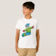 The t-shirt feels and looks great quality, a good thick cotton. It will be a little big for my son, but that means he will be able to wear it and not out grow it too soon. The print was as described on the order when personalised. True size, shape and colour T-shirt- thanks.