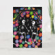 Skeleton Dancers Dancing to Music amongst Flowers Holiday Card