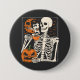 Skeleton Drinking Coffee Lover Halloween Skull Funny design Gift Round Button Classic Collection.
