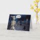 Any recipient will love receiving this silly Halloween card featuring a skeleton who thinks he can tell jokes and a bunch of cute kids out trick or treating on Halloween night. But wait, is that a scared skeleton on the side of the road? The punchline is inside the card.