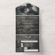 This Skeleton Gothic Wedding All-in-One Invitation offers a hauntingly elegant design, perfect for couples seeking a wedding theme that exudes dark romance and gothic allure. Featuring a skeleton couple adorned in intricate gothic wedding attire against a backdrop of deep blue-black, this invitation captures the essence of timeless love intertwined with the macabre.