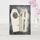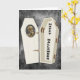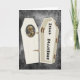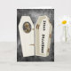 Laughing skeleton peers through opening in coffin. A spooky card to wish that special someone a Happy Halloween!