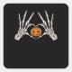 Skeleton Hand Heart And Pumpkin Funny Skull Hallow Square Sticker