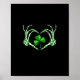 A skeleton hand heart shamrock St. Patrick’s Day design. Festive, green, and seasonal.