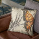 Halloween throw pillow to haunt up your home for the spooky season. Skelton hand wearing three different orange and silver Victorian rings seems to reach out to the steampunk styled monarch butterfly on this Halloween throw pillow. Enjoy this one!