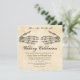 Skeleton hands adorn this gothic, Halloween, wedding invitation made to look like it's printed on old paper.