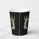 Add a creepy, personalised touch to your wedding with these paper cups. These disposable cups are black and feature an illustration of skeleton hands in a heart shape framing the bride and groom's names and wedding date. The graphic and text are in a cream or ivory colour. The macabre style is perfect for October weddings or events with a goth theme.