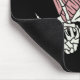 Skeleton head with cap enjoying a drink on a mouse pad.