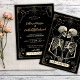 Introducing the Tarot Skeleton Love invitation, where the mystical worlds of tarot and the cosmic romance of a skeleton couple intertwine seamlessly. Infused with the enigmatic allure of a Tarot motif, this invitation brings an elegant mystique to your wedding celebration. Despite the unconventional pairing, the bond between a skeleton couple under the stars exemplifies the enduring strength of love. Tailored for tarot enthusiasts and those who believe in the power of love, this invitation is perfect for weddings with an esoteric or celestial theme. Also it is perfect for a goth wedding. Immerse your guests in enchantment and captivate them with the timeless allure of skeletons and the cosmic essence of true love. The stylish monograms enhance the invitation's design. The wording is completely editable. You can change size, colour, font, position in page.