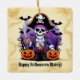 Add a swashbuckling touch to your spooky season décor with this Pirate Halloween Ornament! Featuring a grinning skeleton pirate with jack-o’-lanterns, bats, and a vintage treasure map background, this square ornament is the perfect blend of spooky and seafaring. The bold message “Happy Halloween Matey!” makes it a standout piece for pirate lovers, Halloween collectors, or themed party hosts. Crafted from durable materials and printed on both sides, this ornament is perfect for hanging on Halloween trees, using as party favours, gift tags, or even adding flair to wreaths and garlands. The text is editable, so you can personalise it with a family name, year, or custom message. Pair it with matching items from the Pirate Halloween Collection for a festive, frightfully fun theme that’s sure to shiver yer timbers! Edit text from the product page or to change font style or colour, use the design tool.