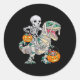 Skeleton Riding Mummy Dinosaur T Rex Halloween Fun Classic Round Sticker
