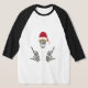 A bold and humourous fusion of Halloween and Christmas: this grinning skeleton with fiery eyes rocks a Santa hat while flashing a rebellious double devil horns gesture. Perfect for edgy holiday gifts, party wear, or gothic Christmas decorations with attitude.