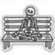 Skeleton sitting on bench