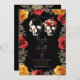Skeleton Skull Red Yellow Fall Floral Wedding Invitation