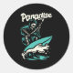 SKELETON SURFING IN PARADISE CLASSIC ROUND STICKER