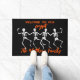 This fun doormat features four skeletons on a black background with orange text that reads: Welcome to our crypt. Easily personalise this whimsically spooky mat with a custom name, other text or remove it completely.