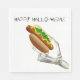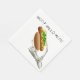 Humourous Halloween party paper napkins, with graphics of a skeleton's hand holding a hotdog. Black text reads Happy Hallo-wienie and can be personalised to read what you want.
