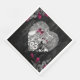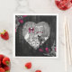 This dark, Gothic themed wedding collection is suited for any time of the year including Day of the Dead, Dia de los muertos and Halloween. The set features skulls, skeletons, ornate scrollwork frames and lush flowers all in black and silver with burgundy accents. Skeletons adorned in bow, ascot and moustache all on a grunge heart background add to the goth mood of this paper napkin. Add your initials and wedding date using the provided template. Search ID866 to see other products and colour options for this design set.