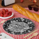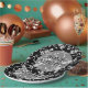 Skeletons on a black background and BONE APPÉTIT in chic lettering, these paper plates are fun for your Halloween party or Halloween birthday party.