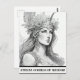 A black and white postcard featuring Athena, the Greek goddess of wisdom, war, and crafts. The postcard features a detailed line art drawing of Athena, depicted as a fierce warrior in a minimalistic black-and-white style.
