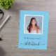 A baby blue background. Personalise and add your own photo. Add a name and a title. The title is written with a modern hand lettered style script with swashes. Black coloured letters. A notebook for sketching your kids, for for your home office.