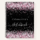 Sketchbook black blush pink glitter name script notebook