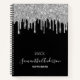 A chic black background with trendy faux silver glitter drips, paint dripping look. Personalise and add a year, name and a title. The name is written with a modern hand lettered style script with swashes. To keep the swashes only delete the sample name, leave the spaces or emoji's in front and after the name. White text.