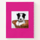 A trendy hot pink coloured background. Personalise and add 2 of your own photo of your dog or pet. Add your name and a title. White coloured letters. A notebook for sketching your dog, taking notes or for school homework.