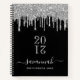 A chic black background with trendy faux silver glitter drips, paint dripping look. Personalise and add a year, name and a title. The name is written with a modern hand lettered style script with swashes. To keep the swashes only delete the sample name, leave the spaces or emoji's in front and after the name. White text.