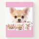Create your own unique photo collage. Use four, 4 of your favourite photo. Personalise and a name and text. A pink background, hot pink text.
