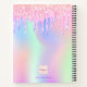 A trendy iridescent colored background with unicorn and rainbow pastel colors in pink, purple, rose gold, mint green. Decorated with pink and rose gold faux glitter drips, paint dripping look. Personalize and add a name and monogram letter. The title: Sketchbook is written with large bold block letters. The name is written with a modern hand lettered style script with swashes. To keep the swashes only delete the sample name, leave the spaces or emoji's in front and after the name.