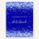 Royal blue background, decorated with faux glitter dust. The title: sketchbook written with a girly modern hand lettered style script with swashes. White coloured letters. A notebook for drawings, sketching, notes and school homework.